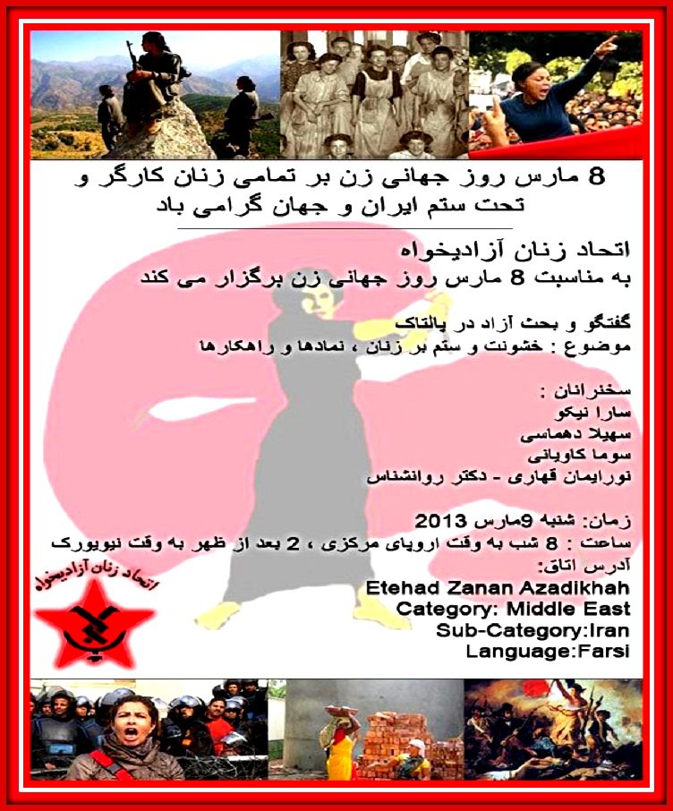 مراسم ۸ مارس ۲۰۱۳ در پالتاک، اتاق اتحاد زنان آزادیخواه 18/03/2013 بدست پریسکه سخنرانی سارا نیکو در اطاق اتحاد زنان آزادیخواه به مناسبت 8 مارس روز جهانی زن در پالتاک -شنبه 9 مارس 2013 خشونت و ستم بر زنان ، نمادها و راهکارها سخنرانی سهیلا دهماسی در اطاق اتحاد زنان آزادیخواه به مناسبت 8 مارس روز جهانی زن در پالتاک -شنبه 9 مارس 2013 خشونت و ستم بر زنان ، نمادها و راهکارها سخنرانی دکتر نورایمان قهاری، روانشناس در اطاق اتحاد زنان آزادیخواه به مناسبت 8 مارس روز جهانی زن در پالتاک -شنبه 9 مارس 2013 خشونت و ستم بر زنان ، نمادها و راهکارها اشتراکگذاری این: برای اشتراکگذاشتن فیسبوک خود کلیک کنید (در پنجرۀ تازه باز میشود) فیسبوک برای اشتراکگذاری روی Telegram کلیک کنید (در پنجرۀ تازه باز میشود) تلگرام برای اشتراکگذاری روی WhatsApp کلیک کنید (در پنجرۀ تازه باز میشود) واتساپ برای اشتراکگذاری رو بالاترین کلیک کنید (در پنجرۀ تازه باز میشود) بالاترین برای اشتراکگذاری رو آزادگی کلیک کنید (در پنجرۀ تازه باز میشود) آزادگی اشتراک گذاشتن توسط اس ام اس (در پنجرۀ تازه باز میشود) X برای به اشتراک گذاشتن روی لینکداین کلیک کنید (در پنجرۀ تازه باز میشود) لینکداین کلیک برای ارسال لینک به یک دوست (در پنجرۀ تازه باز میشود) رایانامه برای اشتراکگذاری رو قیرمیز کلیک کنید (در پنجرۀ تازه باز میشود) قیرمیز برای اشتراکگذاری روی تامبلر کلیک کنید (در پنجرۀ تازه باز میشود) تامبلر برای به اشتراک گذاشتن در رددیت کلیک کنید (در پنجرۀ تازه باز میشود) رددیت برای اشتراکگذاردن روی پینترست کلیک کنید (در پنجرۀ تازه باز میشود) پینترست کلیک نمایید تا روی Pocket اشتراک گذاشته شود (در پنجرۀ تازه باز میشود) پاکت برای چاپ کردن کلیک کنید (در پنجرۀ تازه باز میشود) چاپ دوست داشتن در حال بارگذاری...