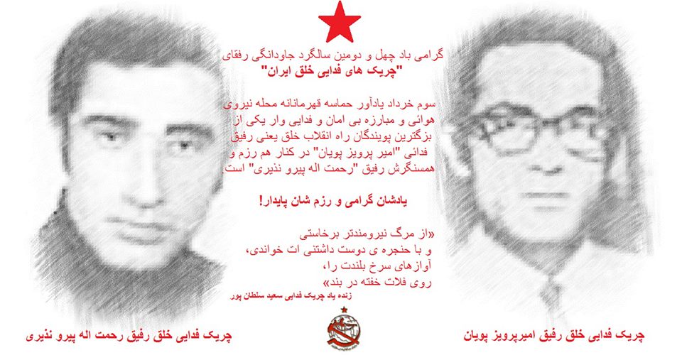 در شرايط اوجگيری جنبش مسلحانه خلق ايران که اکنون به عنوان واقعيتی انکارناپذير به رشد تصاعدی خود ادامه میدهد، خاطره رفيقی را گرامی میداريم که با نثار خون پاکش جنبش مسلحانه خلق ما را آبياری کرد.