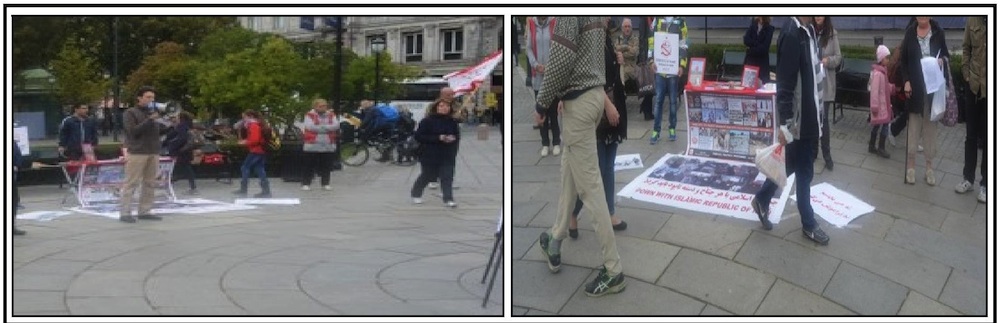 در محل مراسم، ميز کتاب و پوسترها و بنرهایی که تصاویر برخی از جنایات رژیم بر روی آن نقش بسته بود قرار داده شده بود که توجه انظار عمومی را به خود جلب می کرد. در اين مراسم که از ساعت ١٢ تا ٢ بعد از ظهر ادامه داشت بارها رهگذران در مورد عکس ها و چرایی و چگونگی آن جنایات پرسش هایی را از برگزار کنندگان این مراسم می کردند که رفقا با رجوع به تاريخ سلطه سياه جمهوری اسلامی پاسخ گوی سئوالات آن ها بودند.