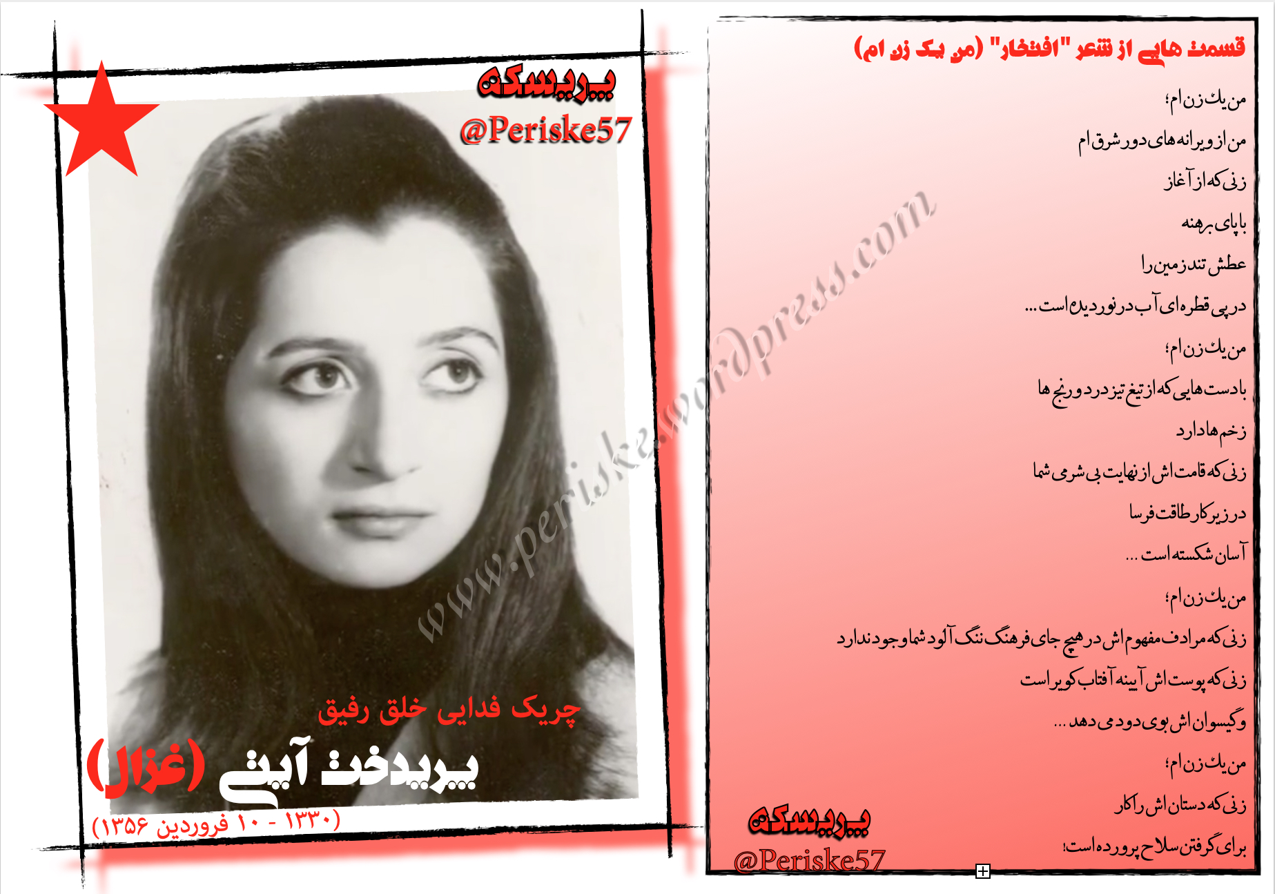و همچنین قسمتهایی از «غزال سرخ ما – به یاد گرامی چریک فدایی خلق، رفیق پری (غزال) آیتی!» به قلم اشرف دهقانی