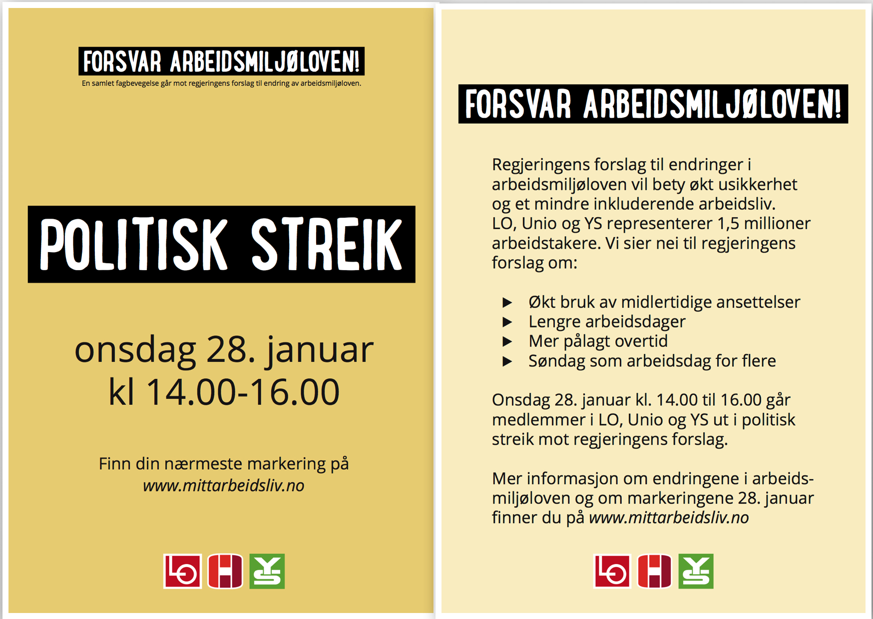 LO, Unio og YS representerer 1,5 millioner arbeidstakere. Vi sier nei til regjeringens forslag om: