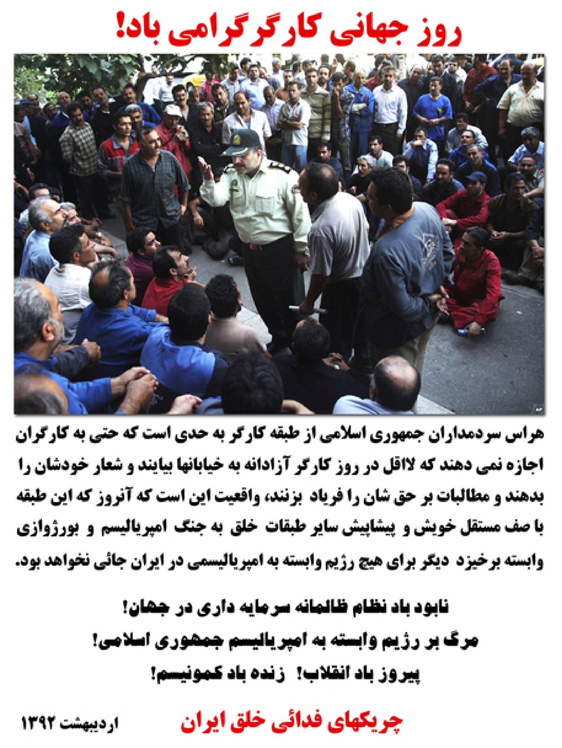 کارگران جهان امسال در شرایطی به پیشواز روز جهانی کارگر (اول ماه مه) میروند که بحران سر تا پای نظام سرمایهداری را فراگرفته و سرمایهداران زالوصفت برای حفظ سودهای نجومی خود با کمک دولتهای حامیشان برنامههای «ریاضت اقتصادی» کمرشکنی را بر کارگران و کل زحمتکشان تحمیل نمودهاند؛ با این هدف که همچون همیشه بار بحرانهای ذاتی نظام خود را هر چه بیشتر بر دوش کارگران و زحمتکشان سرشکن نمایند. برنامههایی که شرایط کار و معیشت کارگران را شدیداً به مخاطره انداخته و تامین حداقل زندگی را برایشان سخت و دشوار نموده است. اخراجهای وسیع، بیکاری، فقر و گرسنگی و بیخانمانی ارمغان تاکنونی چنین برنامههایی برای محرومان بوده است تا سودهای بادآورده مشتی سرمایهدار مفتخور تداوم یابد.
